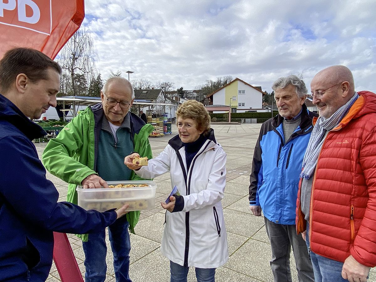 Die Weilerbacher SPD bei Ihrer Osteraktion auf dem Dorfplatz.