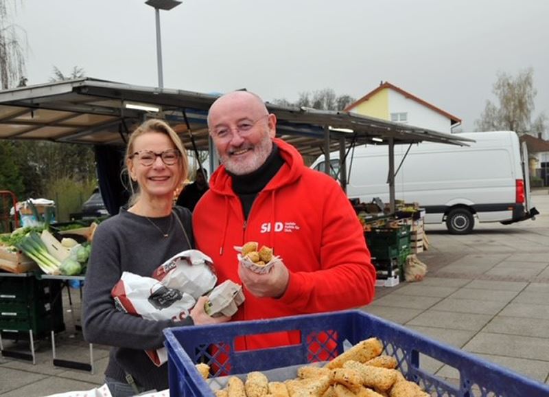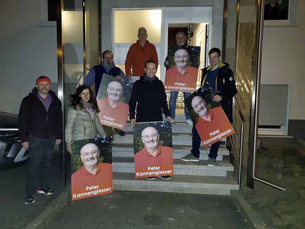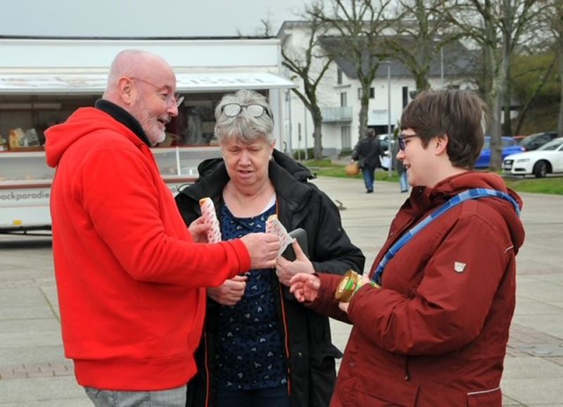 Ortsbürgermeisterkandidat Peter Kannengiesser und sein Team verteilten leckere Fitnessstangen und wünschten frohe Ostern